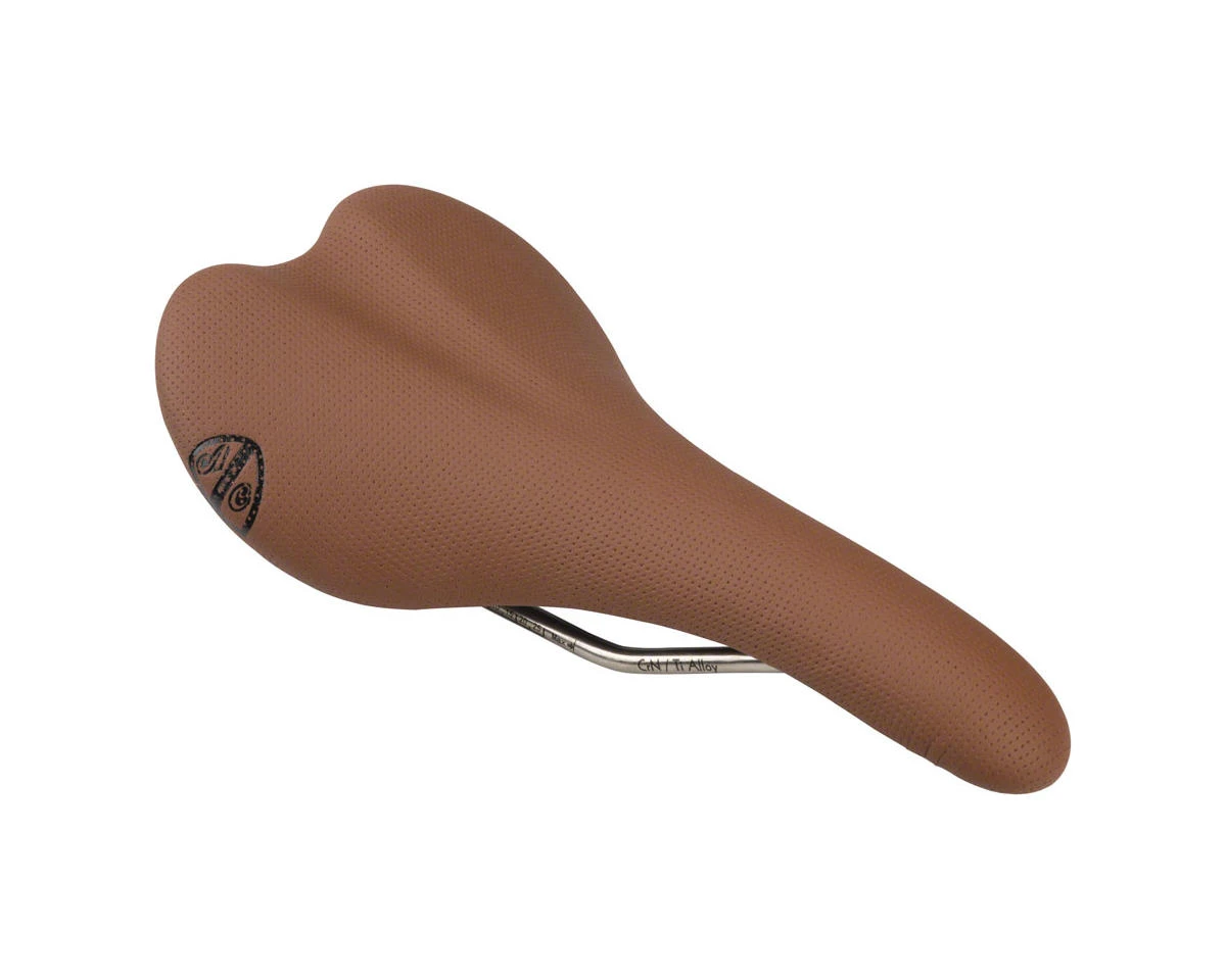 All-City Gonzo Saddles. Neutral shape, genuine leather top with totally sweet perforations, and CrN/Ti alloy rails, and a modest price tag.