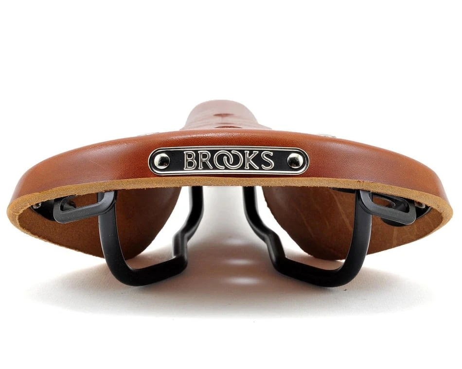 This is the Brook Saddle B17 S Standard Women’s Saddle. The B17 is Brooks’ flagship model, ideal for long distance sports touring, trekking and all-terrain use. It has been on the market for over 100 years, being featured in as early as the 1898 catalogue. The model is available for gents and ladies: the B17 (gents) and B17 S (ladies). The Standard models feature black steel rails, the B17 Special features copper plated steel metalwork, and the B17 Titanium. Both the B17 Special and the Titanium also feature hand hammered copper rivets.