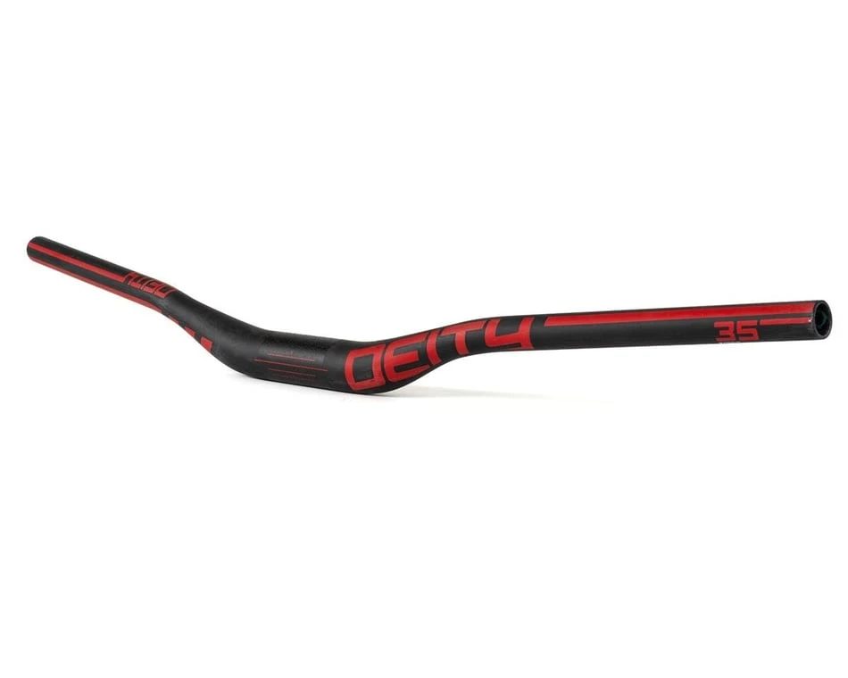 The Deity Speedway Carbon Riser Bar is built to conquer the gnarliest of downhills and mind-warping speed. Speed is fun, but being able to maintain control while going fast is equally important. At 810mm wide and with 30mm of rise the ride is responsive, comfortable, and completely under the rider’s command. A 35mm bar clamp diameter and uni-directional carbon layup allow chatter and vibrations to be soaked up while remaining reactive to handlebar input. The Speedway bars are here to help set those top-speed PR’s.