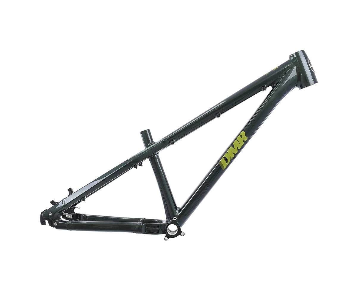 The DMR Rhythm Dirt Jump Frame offers a lot of the features of the mountain bike world with the intention of hitting jumps and pump tracks like a BMX bike. The 6061 T6 aluminum alloy frame includes interchangeable dropouts, allowing you to run gears or single speed. This dropout system slides to allow for ideal chain tensioning and chainstay length. The tapered headtube fits with a suspension fork ranging from 100 to 140mm travel. This frame is light to get you going fast on a pump track while still strong enough for big dirt jumps or skateparks.