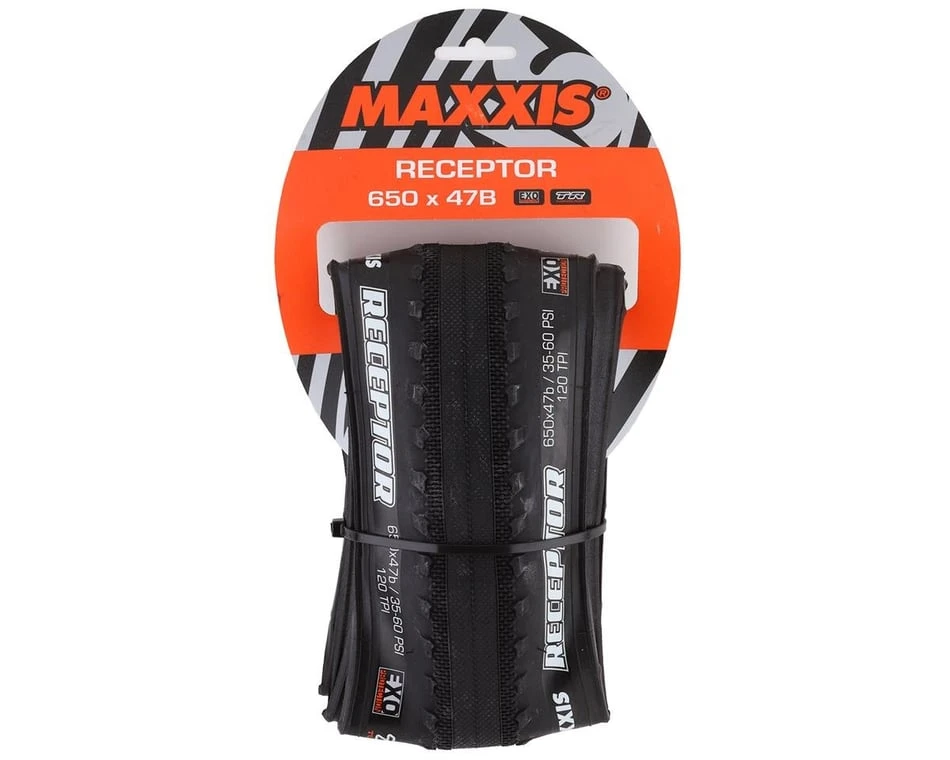 The Maxxis Receptor is a semi-slick gravel tire designed for riding on pavement, hard-packed dirt roads, and light gravel. With its low profile center tread, the Receptor rolls easily no matter the surface. Small side knobs provide cornering traction in loose over hard terrain.