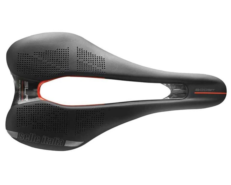 The Selle Italia SLR Boost Kit Carbonio Superflow Saddle is designed for the highest levels of racing. Light and comfortable, it is well-suited to aero riding positions with SuperFlow technology and a “Boost” nose for a better fit. To minimize weight without losing durability, this saddle is constructed with a carbon-infused shell and ceramic-coated carbon rails. With Selle Italia’s ID Match system there is a saddle size and profile for every type of rider and riding style.