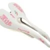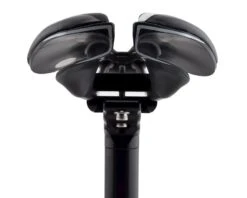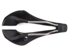 This is the Selle Italia SP-01 Boost Superflow compact men’s road saddle. This compact, short nose saddle features a split rear section which Selle Italia calls it’s “suspension link movement”. This innovative design approach creates a unique support structure that allows independent flexing of the left and right sides, to correspond with the alternating movements of your hips while pedaling. The Superflow large center cut out relieves perineal pressure and improves blood flow to the sensitive areas, helping to reduce pain and numbness during long days in the saddle. Super strong titanium rails absorb vibrations from the road and keep the saddle extremely lightweight.
