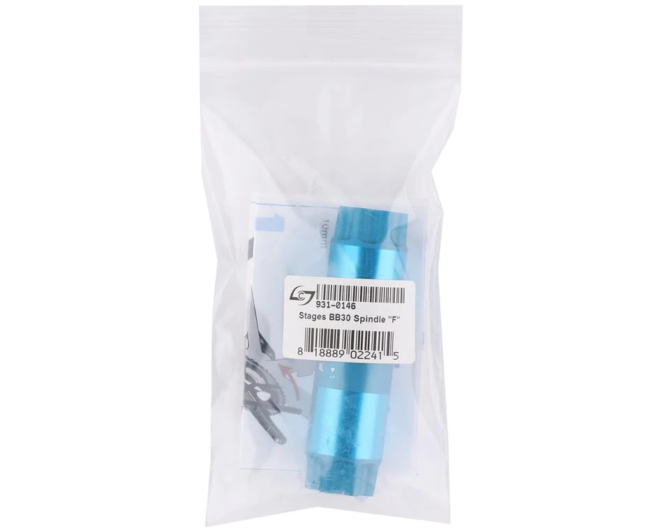 The Stages Spindles are manufactured for Stages Cycling by Full Speed Ahead, forged and machined out of aluminum to allow for the carbon Stages Power meter for FSA 386 EVO and Stages Carbon 30mm model to be used with many SRAM BB30 road and SRAM BB30 mountain bike drive side cranks, as well as SRAM DUB MTB, Race Face Next SL and Specialized S-Works Road.