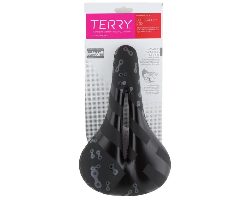 The Terry Butterly LTD saddle is designed to take comfort and style up a notch. A wider platform in the rear than typical race oriented saddles provides good support for women’s sit bones while a butterfly cut-away in the center of the saddle reduces unwanted pressure on sensitive areas. Throw in a printed Dura-tek cover with limited edition graphics and this saddle will have everyone jealous of your style.