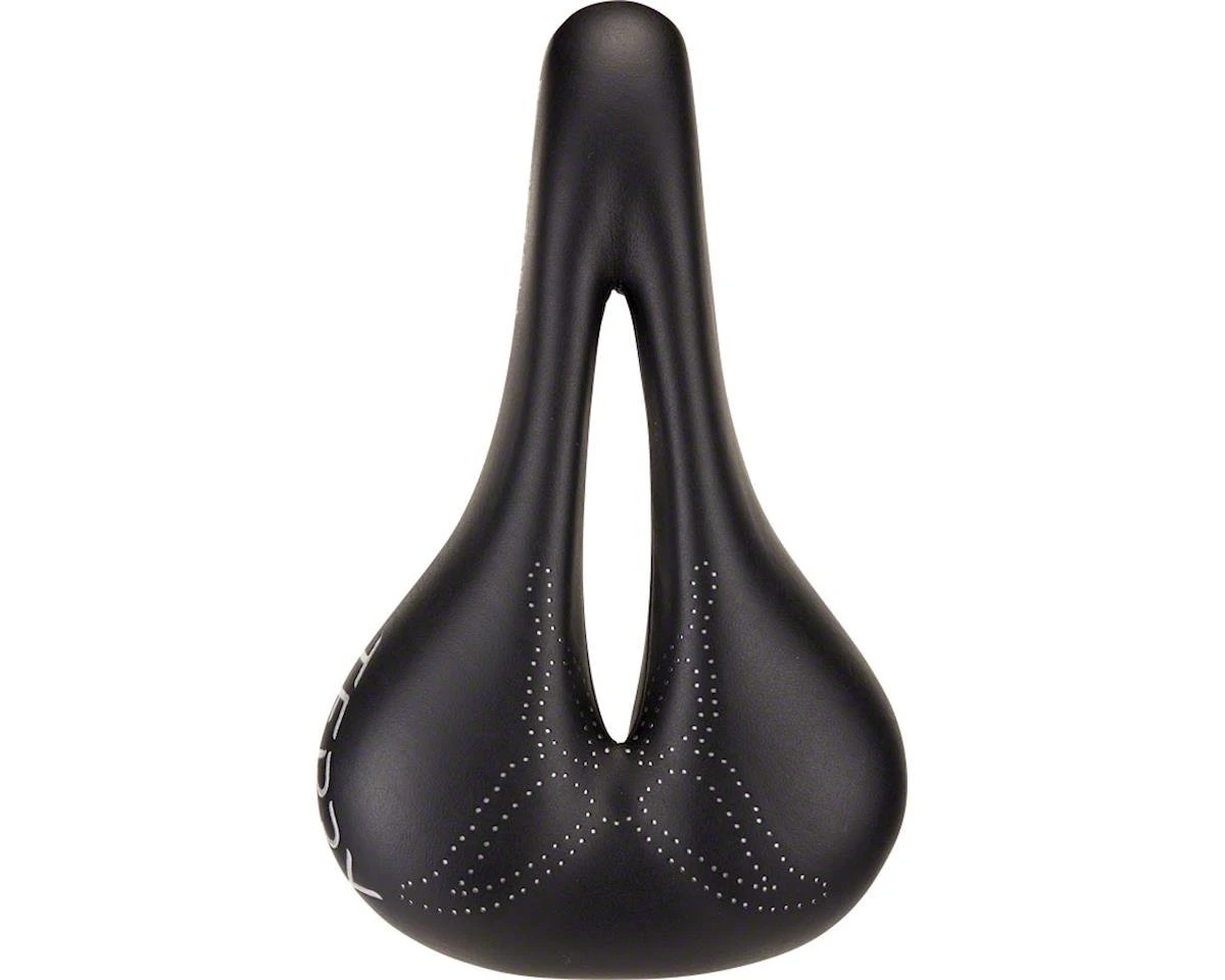 A wider center cutaway and the addition of gel along the top are the 2 primary differentiators between this saddle and the classic Butterfly. The wider relief channel, combined with its contoured rear and thin gel layer, makes the Butterfly Ti Gel + extremely comfortable and ideal for endurance riders. Wider in the rear than typical race saddles for good support of a woman’s sit bones; remolded cutaway through the nose and mid-section for flexibility and comfort against soft tissues; low profile, flat top with multi-density injection molded foam that’s a bit stiffer in the rear for more power while pedaling; lightweight, super strong ti-316 rails.