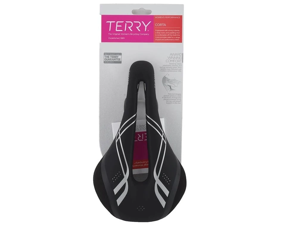 Terry Women’s Corta Saddle has a shorter overall length and a dropped nose which combine to eliminate excess surface area, prevent chafing, and alleviate pressure. Terry also engineered it with their largest cutaway for the greatest relief channel possible. It’s supportive and flat at the rear so you have a good platform for sustained, seated climbs. Aesthetically, the Corta is a streamlined beauty with textural detail and state-of-the-art technology.