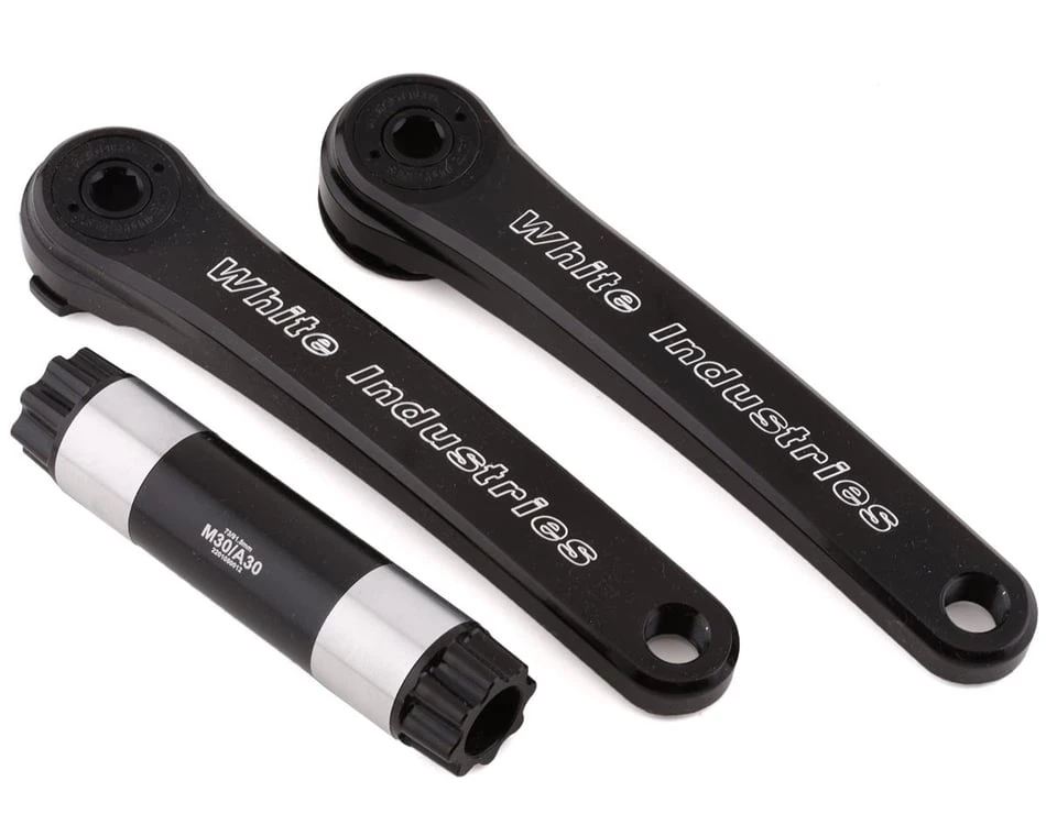 The White Industries M30 Crankset is designed for mountain bike use and features a wider Q-factor over the R30 or G30 to allow for greater clearance. The crankset is constructed out of US sourced 2024-T365 aluminum, and CNC machined down to perfection. White Industries describes the M30 as “a mountain bike crankset”, plain and simple.